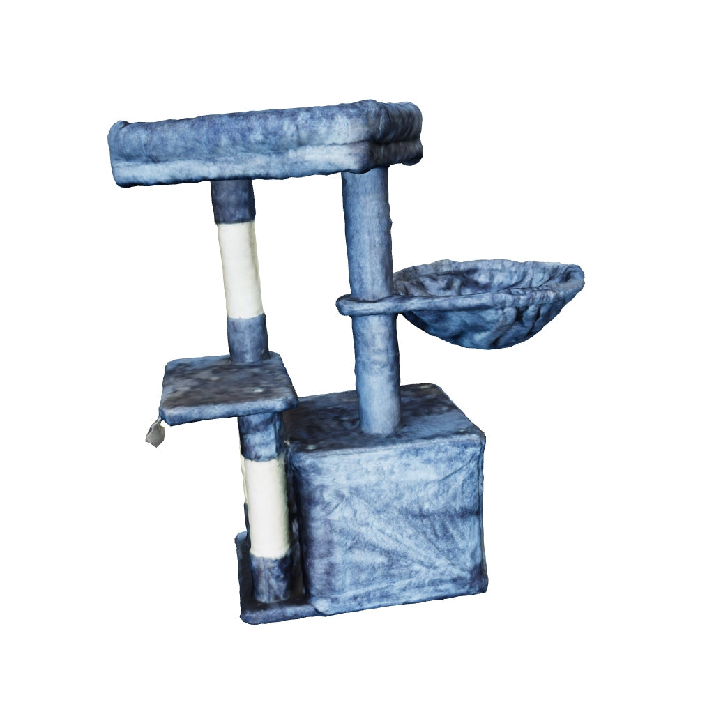 - Tres postes rascadores 🌀: Recubiertos con cuerda de sisal natural, ideales para mantener las uñas sanas y evitar daños en tus muebles.